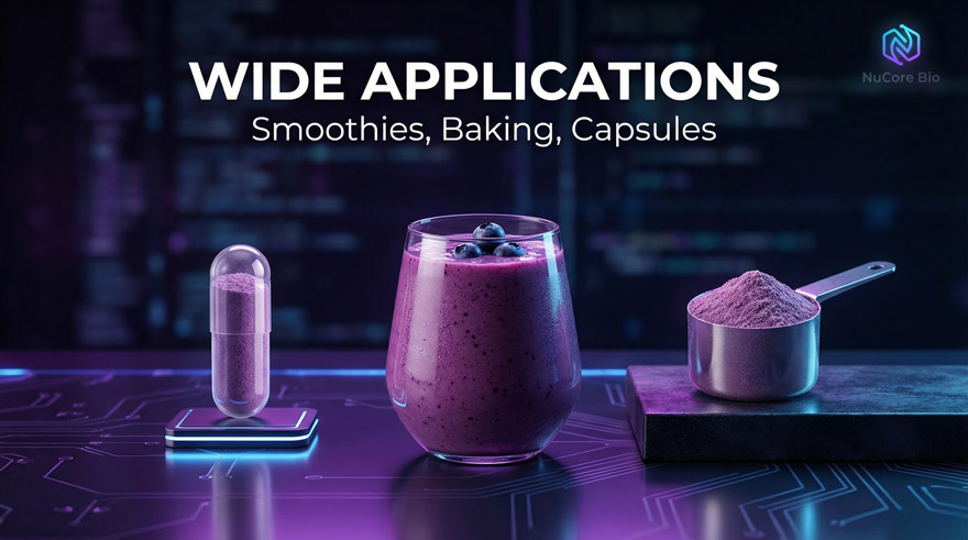 NuCore Bio’s high-potency blueberry extract is a powerhouse of bioactive anthocyanins and antioxidant peptides. It is clinically recognized for enhancing cognitive function and neurological health, protecting against oxidative stress, and supporting vision recovery. Its potent anti-inflammatory properties promote cardiovascular wellness and metabolic balance, making it an essential ingredient for premium longevity and performance formulas.