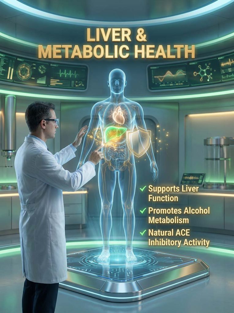 Beyond liver health, this peptide exhibits powerful Natural ACE Inhibitory Activity, supporting metabolic and cardiovascular wellness. Its exceptional stability and bioavailability make it an ideal bioactive ingredient for “Blue Ocean” anti-fatigue and metabolic health products.
