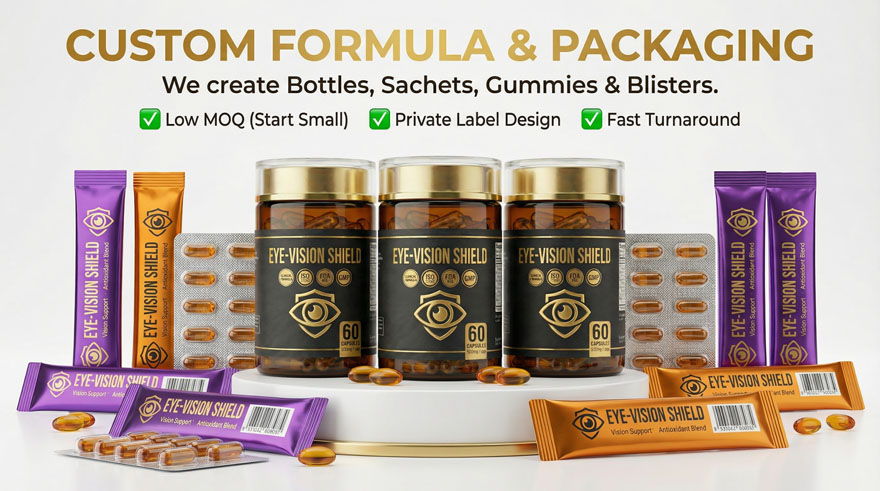 Eye Vision Shield Pro OEM: Walnut Peptide 300-500Da with Lutein & Zeaxanthin – Private Label High-Potency Blue Light Filter Formula