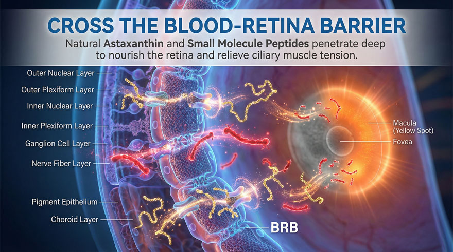 Differentiate your brand with our R&D-led formula featuring ultra-low molecular weight Walnut Peptides (300-500Da). This “Blue Ocean” ingredient offers superior bioavailability compared to standard eye vitamins, ensuring rapid absorption and measurable results for your customers.