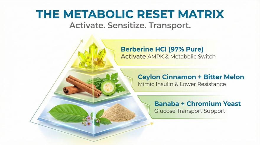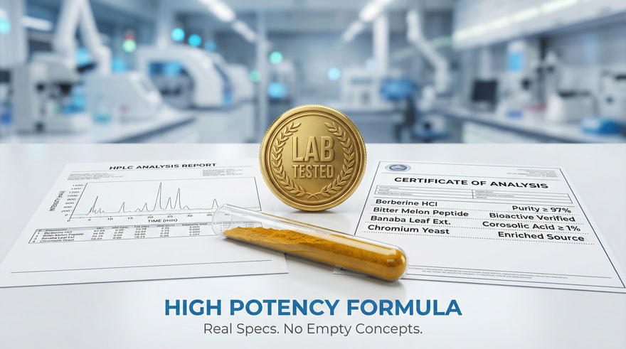 Our doctoral R&D center, led by 13 PhD experts, developed this blue-ocean formula featuring low-molecular-weight Bitter Melon Peptides and enriched Chromium Yeast. Unlike “empty concept” supplements, our 97% Purity Berberine HCl and BioPerine® ensure maximum absorption and clinical-grade potency for superior metabolic support.