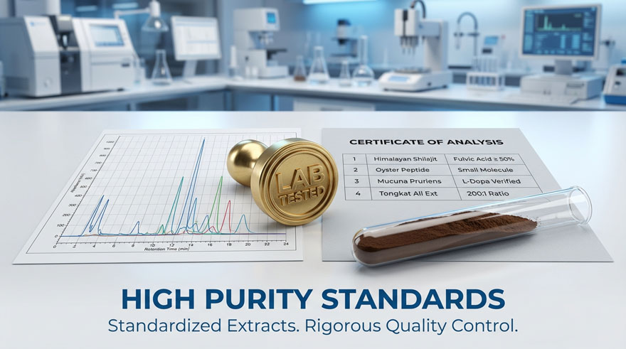 Partner with a global leader. Our formula is developed by 13 PhD experts, featuring 50% Fulvic Acid Shilajit and 200:1 Tongkat Ali extract. We provide real HPLC analysis reports and COAs for every batch—ensuring “Real Specs, No Empty Concepts” to build your brand’s professional authority.