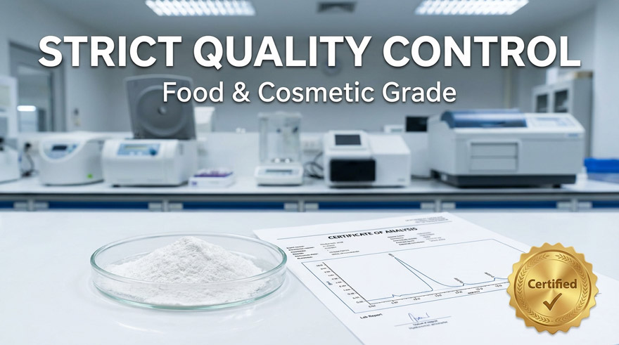 Quality begins at the source. Our Hyaluronic Acid is derived from professional Microbial Fermentation, ensuring a vegan-friendly, non-GMO, and ultra-pure active ingredient. This sustainable “Pure Source” technology eliminates animal-derived impurities, making your finished products highly compliant with US and EU clean-label regulatory standards.