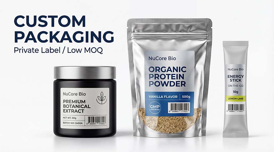 Bring your brand to life with NuCore Bio’s OEM Service. We provide end-to-end Private Label solutions, including Custom Logo design and diverse packaging options. Our Low MOQ policy allows you to launch a high-quality mushroom supplement line with minimal upfront investment, tailored to your specific market needs.