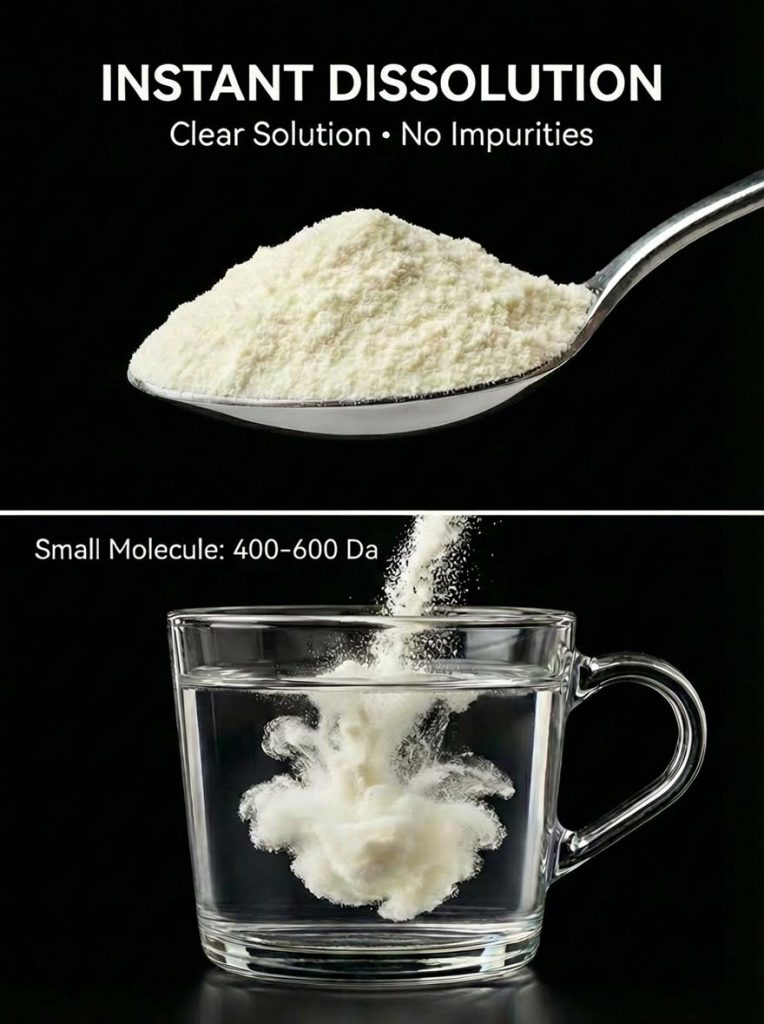 Experience the power of ultra-low molecular weight. Our Male Silkworm Peptide is refined to 400-600 Daltons, ensuring significantly faster absorption compared to traditional Maca or herbal powders. It dissolves into a Clear Golden Solution, delivering nutrients directly to the bloodstream for instant energy.