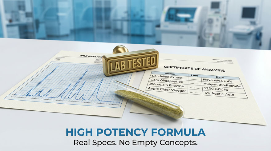 Stand out from “empty concept” competitors with our Doctoral R&D Formula, developed by 13 PhDs and 26 Masters. We provide full HPLC Analysis and COA documentation for every batch. Ingredients like BioPerine® and Huayan Bio-Peptide ensure maximum bioavailability, providing your brand with a solid foundation of scientific credibility and customer loyalty.