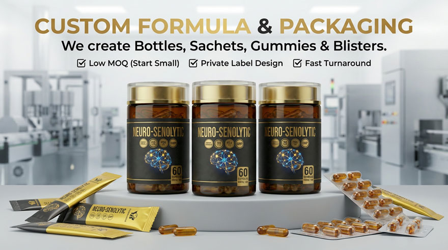 Maximize your ROI with our flexible procurement terms. Whether you are a niche seller or a large-scale distributor, our Low MOQ private label service allows you to test the high-growth longevity market with minimal risk. Partner with NuCoreBio to dominate the cognitive health and senolytic supplement sector today.