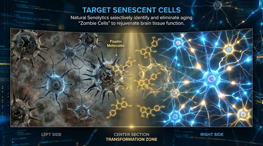 Revitalize cognitive function by targeting “Zombie Cells” (senescent cells) within the nervous system. This bio-active formula clears neural metabolic waste, eliminates brain fog, and repairs damaged neurons, significantly enhancing memory, focus, and long-term brain aging resilience.