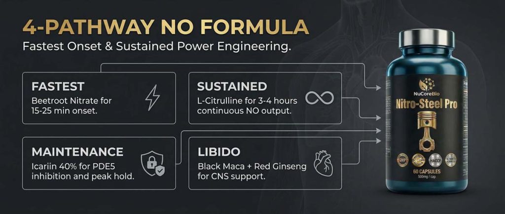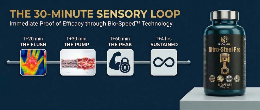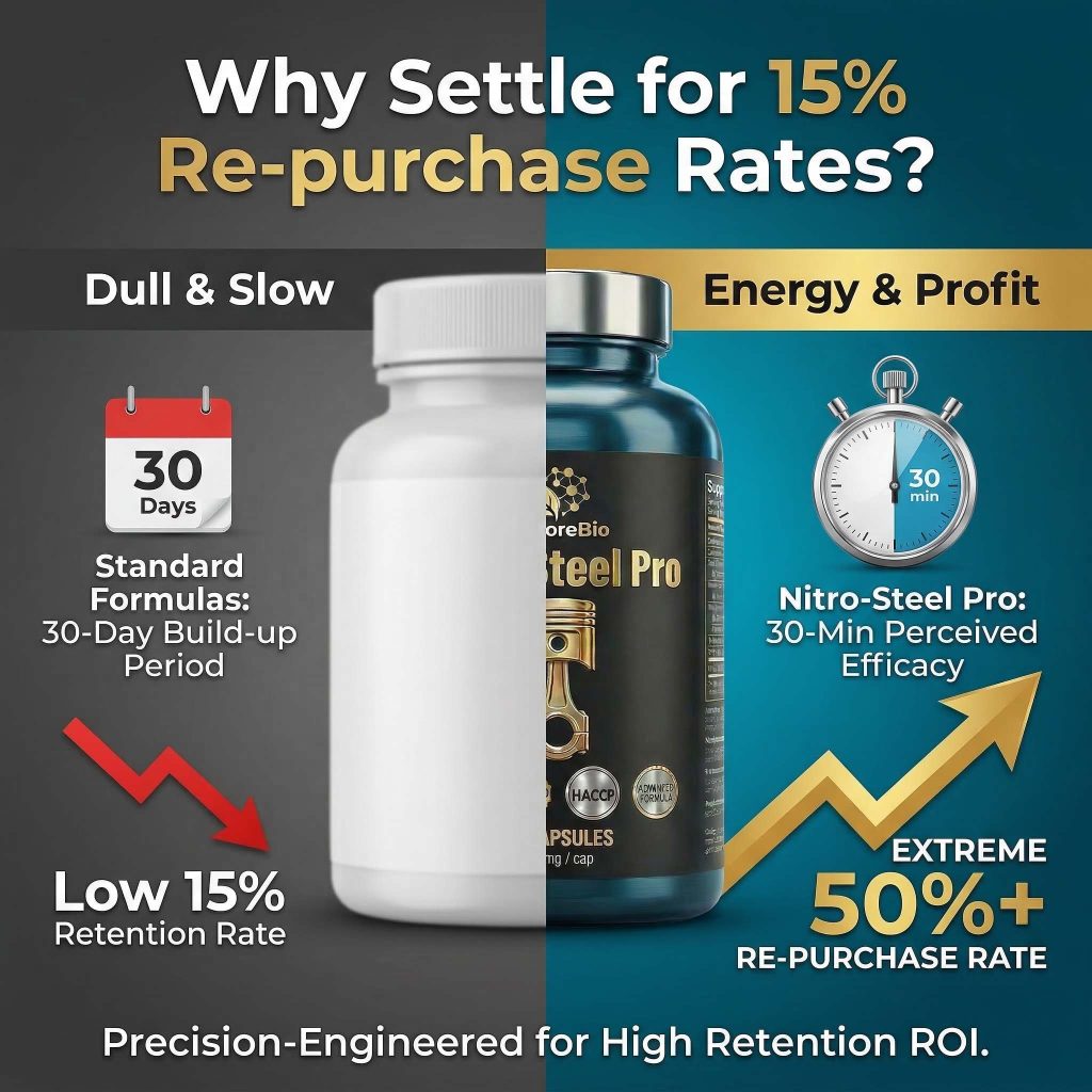 Nitro-Steel Pro is a precision-engineered male enhancement formula featuring Bio-Speed™ Rapid Absorption Technology, delivering measurable sensory feedback within 30 minutes. Unlike standard formulas requiring 30-day build-up periods, our four-pathway nitric oxide system drives repurchase rates exceeding 50% — triple the industry average.