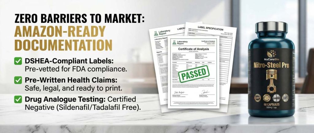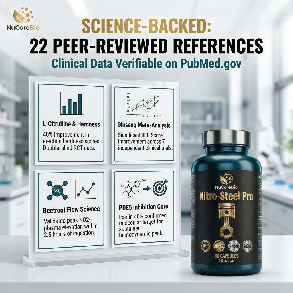 Backed by 22 peer-reviewed references with clinical data verifiable on PubMed, Nitro-Steel Pro gives your brand the scientific credibility and retail-ready documentation to compete in the U.S. supplement market from day one.