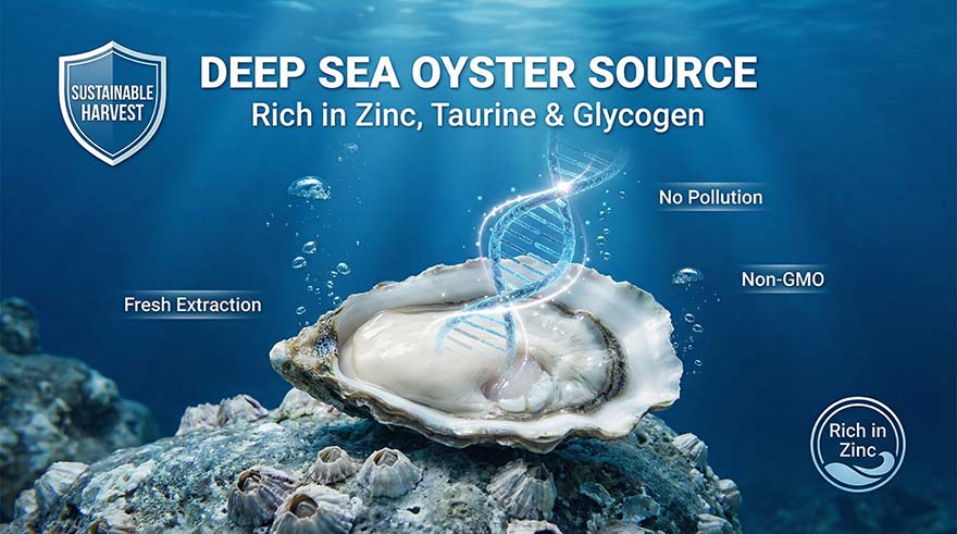 Leverage our Deep Sea Oyster Source for a natural Vitality & Energy Matrix. Unlike raw oyster extracts, our Oyster Peptide boasts a Low Molecular Weight (Avg. 800 Dalton), ensuring superior absorption and High Zinc Bioavailability to boost stamina and sports recovery.