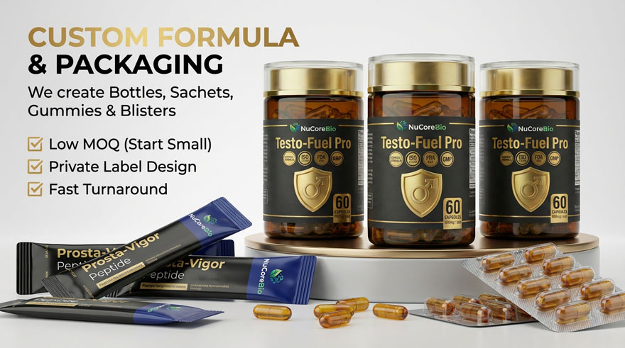 We offer a seamless one-stop solution from raw powder to finished gold-capped premium capsules. Whether scaling a niche label or launching “Testo-Fuel Pro,” our flexible low MOQ (Minimum Order Quantity) minimizes your inventory risk. Our rapid production cycle and professional supply chain ensure your business remains agile in a fast-moving e-commerce landscape.
