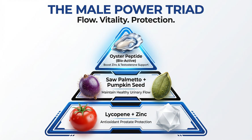 Scientifically formulated to restore peak masculine vitality and optimize urinary system health. This doctoral-grade formula combines Huayan Bio-Active Oyster Peptides with premium Saw Palmetto to support healthy prostate function and improve flow strength. By maintaining hormonal balance and providing essential zinc, it enhances daily stamina, physical performance, and long-term reproductive wellness for men.