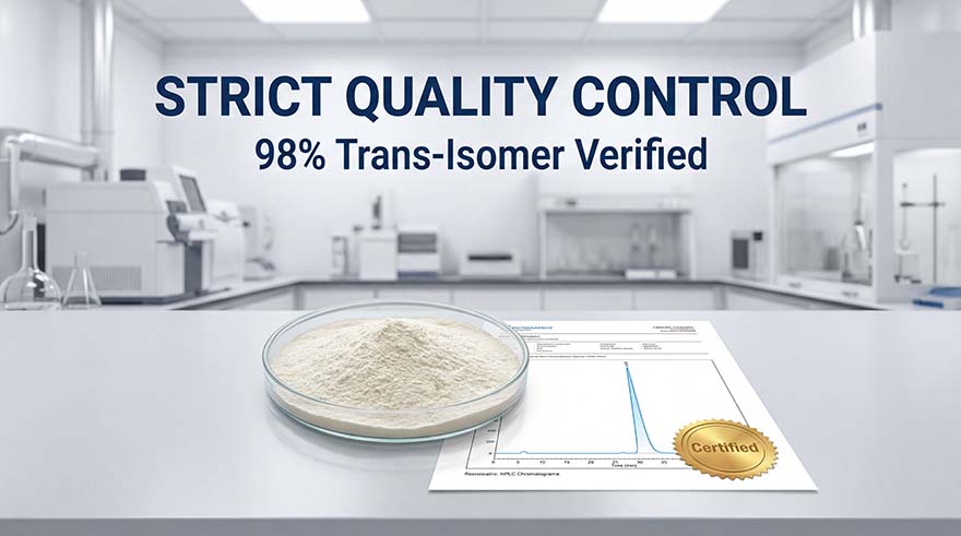 Eliminate middlemen and maximize your margins with direct-from-manufacturer pricing. Our Trans-Resveratrol is the ultimate “blue ocean” keyword opportunity in the anti-aging market. We provide technical data sheets and high-resolution assets to help you convert inquiries into long-term wholesale partnerships.