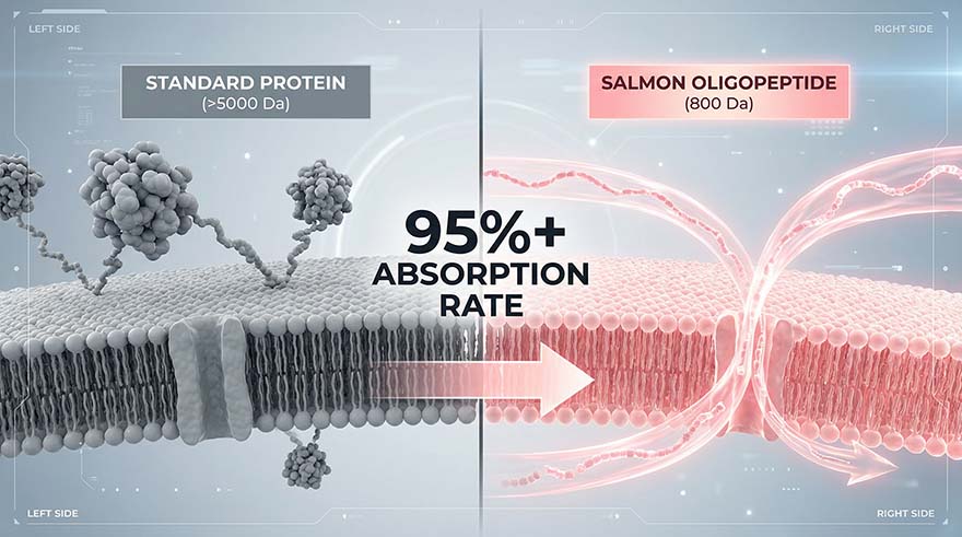 Differentiate your brand with our <300 Dalton Salmon Collagen Peptide. Utilizing advanced bio-enzymatic nano-technology, our oligopeptides achieve a nearly 100% absorption rate, bypassing complex digestion. This “instant-entry” bioavailability is the gold standard for high-end nutraceutical formulations and professional-grade anti-aging supplements.
