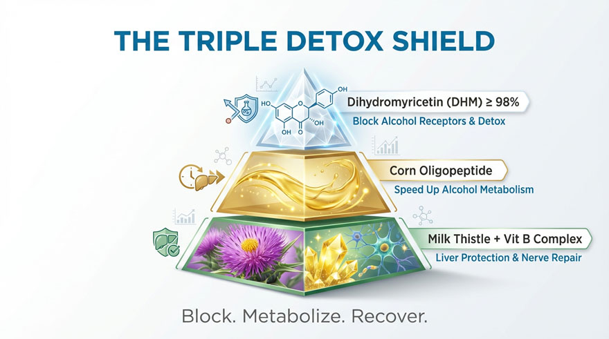 Specifically engineered for rapid metabolic recovery, this doctoral-grade formula accelerates alcohol acetaldehyde decomposition, protects hepatocytes from oxidative stress, and replenishes essential electrolytes. It effectively mitigates hangover symptoms while providing long-term liver detoxification and physiological “recharge” for high-performance lifestyles.