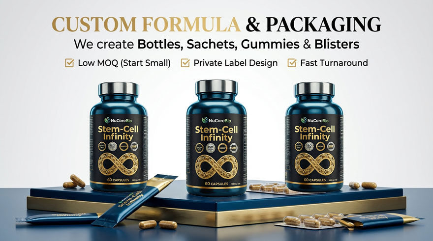 Transform from powder to finished capsules seamlessly with our One-Stop Solution. We offer Low MOQ for private labels, zero R&D costs, and compliant manufacturing under FDA, GMP, ISO 22000, and HACCP standards, making it the ideal choice for high-growth supplement distributors.