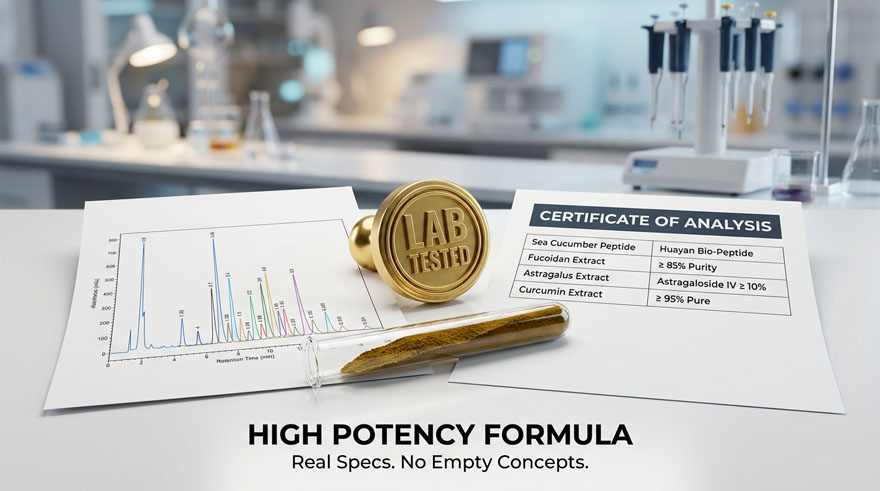 Stay ahead of the competition with our Blue Ocean Formula developed by 13 PhDs and 26 Masters. This potent blend features Huayan Bio-Peptide and Astragaloside IV ≥ 10%, delivering a high-margin, viral-ready product that fills the gap in the premium longevity market.